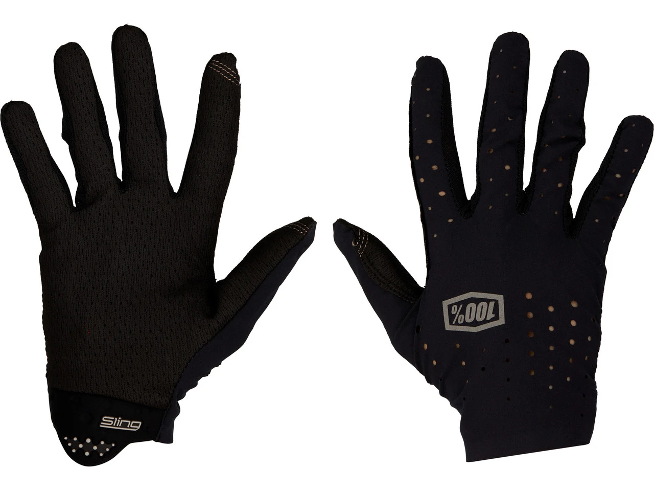 Die 100% Sling Ganzfinger-Handschuhe bieten Dir den Schutz von MTB-Handschuhen kombiniert mit einem unnachahmlich leichten Tragegefühl. Sie bestehen aus ultraleichtem 4-Wege-Stretchmaterial mit perforierten Belüftungsöffnungen. Die perforierte, einlagige Innenseite, Netzeinsätze an den Fingern und die bequemen Schlupfbündchen verstärken den Eindruck, überhaupt keine Handschuhe anzuhaben. Die mit reflektierenden Elementen ausgestattete, komfortable Oberhand sorgt für einen modernen Look und schlichte Eleganz.