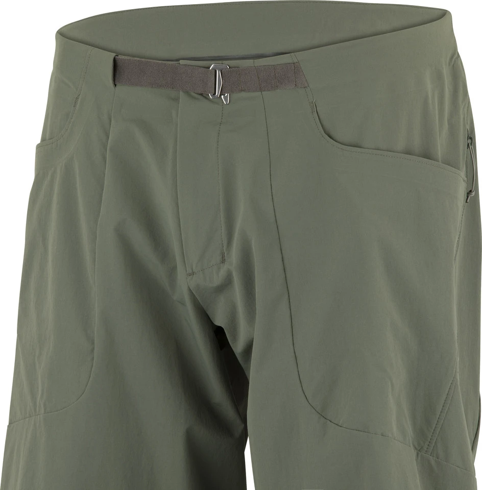 Spezifikationen:Einsatzbereich:All Mountain, Cross Country, EnduroAusführung:kurzSchnitt:Relaxed FitSitzpolster:ohneMaterialausstattung:DWR (wasserabweisend)Features:lockerer Relaxed Fitschnelltrocknender 4-Wege-StretchstoffAnything System mit Verstaumöglichkeiten: zwei Reißverschlusstaschen an der Seite sowie zwei Hosentascheneinfaches Verstellsystem mit Haken zur Weitenanpassung an der HüfteReißverschluss mit Druckknopfkann durch leicht ausgestellte Hosenbeine gut mit Knieschonern kombiniert werdenreflektierende DetailsMaterialzusammensetzung:85 % Nylon, 15 % Elasthan