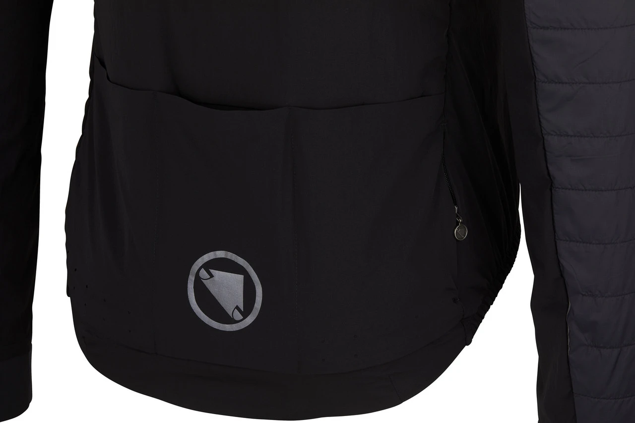 Die Endura Pro SL II Jacke trotzt mit PrimaLoft®-Isolierung der Kälte und ist für Rennradler konzipiert. Sie punktet mit klugem Paneel-Design, das verschiedene Bedürfnisse der Oberkörperpartien abdeckt. Besonderen Schutz verdient die Vorderseite, die mit winddichtem Stoff und dichter PrimaLoft-GOLD-Isolierung versehen ist. Am Rücken und den inneren Ärmeln hingegen sorgt Stretch-Material mit dünnerer Isolierung für volle Bewegungsfreiheit und verbesserte Atmungsaktivität. Perforierungen unter den Achseln tragen zusätzlich zur Belüftung bei. Eine wasserabweisende, umweltverträgliche DWR-Beschichtung schützt vor Nässe. In den drei Rückentaschen finden Gele und mehr Platz, außerdem gibt es eine kleine Reißverschlusstasche, beispielsweise für Deinen Schlüssel. Die Jacke behält durch Silikon am elastischen Saum ihren perfekten Sitz, ist leicht und lässt sich klein zusammenpacken.