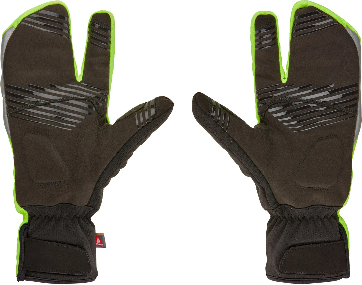 Spezifikationen:Einsatzbereich:Road, Touring & Trekking, CityAusführung:Ganzfinger-HandschuhePolsterung:GelMaterialausstattung:wasserdichtVerschluss:SchlupfhandschuhFeatures:warme Winterhandschuhe im Hummerscheren-Designthermoisolierend dank Primaloft™-Gold-Futterwinddicht und wasserabweisendGel-Polster gegen Druckstellenverbesserter Halt durch Silikonprint auf der InnenhandTouchscreen-kompatibelelastischer, anschmiegsamer Bundreflektierende DetailsMaterialzusammensetzung:70 % Polyester, 20 % Polyamid, 5 % Polyurethan, 5 % Elasthan