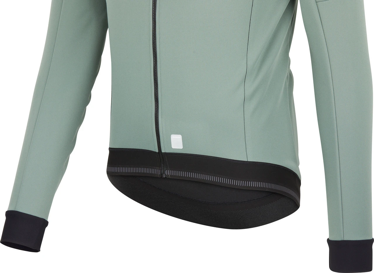 Die Beaufort ist eine winddichte und wasserabweisende Rennradjacke von Shimano, die dank ihrer ergonomischen Passform flatterfrei sitzt, ohne Deine Beweglichkeit einzuschränken. Sie schützt Dich im Frühjahr und Herbst vor ungemütlichem Wetter und hat einen leicht wärmenden Effekt. Die Jacke verfügt über einen hohen, angerauten Kragen, der den Hals gegen Kälte abschirmt. Mit ihren elastischen Ärmelbündchen lässt sie sich leicht anziehen. Außerdem sorgt der Silikonbund für einen sicheren Sitz. An dieser Stelle kommen auch Reflexelemente zum Einsatz, um die Sichtbarkeit im Dunkeln zu erhöhen. Abgerundet wird das Modell durch drei Rückentaschen, eine schweißdichte Innentasche sowie einen Reißverschluss mit Windschutzleiste.